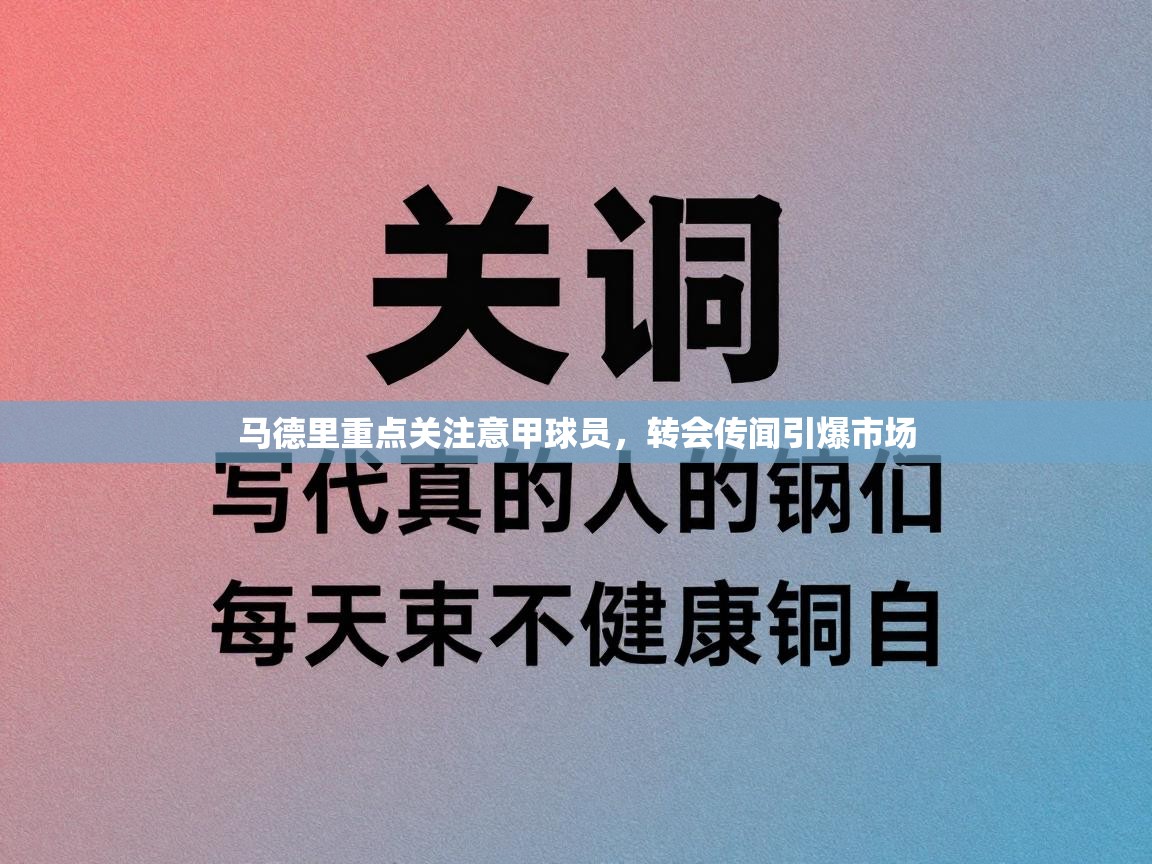 当西甲巨星们的动向已被放大镜检视,马德里俱乐部却将视线转向了意甲这片战术土壤。意甲长期以防守稳固、战术纪律见长,涌现出既具个人能...